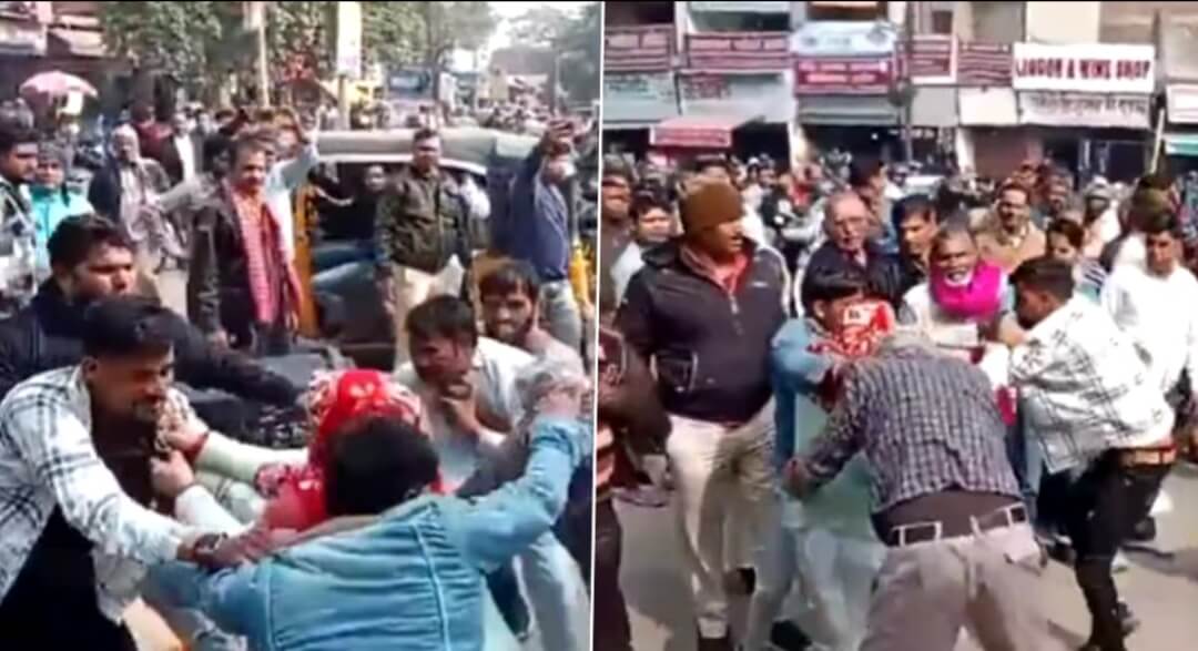 मथुरा। सदर बाजार थाना क्षेत्र के अंतर्गत आनेवाले महिला पुलिस स्टेशन में दो पक्ष के लोग समझौते के लिए आएं थे। जैसे ही ये लोग बाहर निकले, इनके बीच जमकर बीच सड़क पर मारपीट हो गई।इस मारपीट का वीडियो सोशल मीडिया पर वायरल हो रहा है। पुलिस स्टेशन के बाहर और पुलिस के सामने इस तरह से मारपीट होने के कारण अब पुलिस पर भी सवाल उठ रहे है। इस घटना के बाद पुलिस ने दोनों पक्षों के 8 लोगों को हिरासत में लिया है। फ़ोटो में देख सकते है की बीच सड़क पर ये लोग आपस में मारपीट कर रहे है। इसमें एक के कपड़े भी फट गए है।