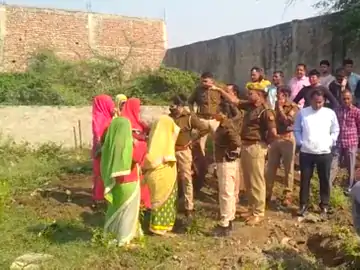 श्मशान भूमि पर निर्माण कराने पहुंची नगर पंचायत गोवर्धन की टीम को महिलाओं के विरोध के चलते लौटना पड़ा