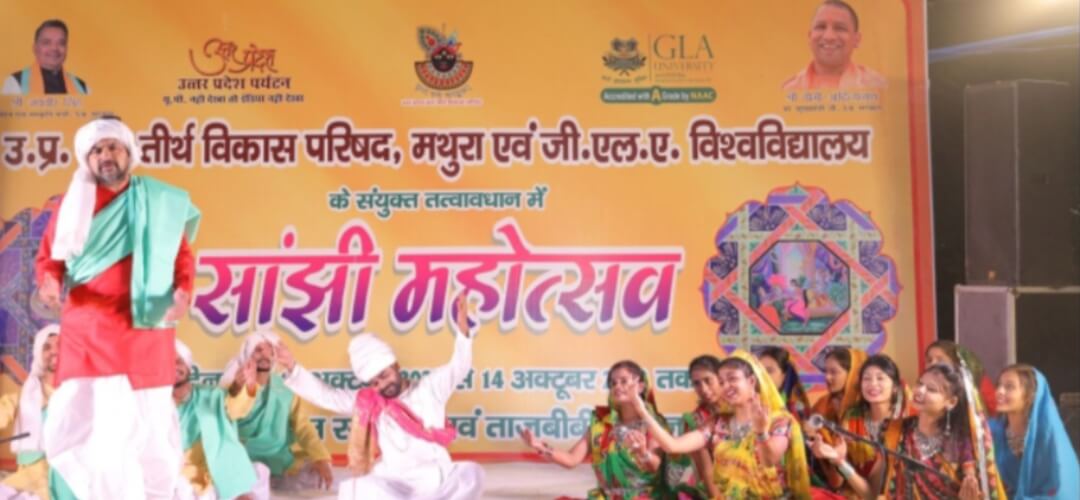 मथुरा। उत्तर प्रदेश ब्रज तीर्थ विकास परिषद, उप्र पर्यटन विभाग और जीएलए विश्वविद्यालय द्वारा संयुक्त रेप से आयोजित पांच दिवसीय  “साँझी महोत्सव” के मंच पर, 14 अक्टूबर (शनिवार) रात एक अत्यंत अद्भुत नाटक  “रसखान के बोल,” का मंचन राष्ट्रीय नाट्य विद्यालय और भारतेन्दु नाट्य अकादमी के पूर्व निदेशक और नवनियुक्त निर्देशक गीता शोध संस्थान एवं रासलीला अकादमी प्रो दिनेश खन्ना के निर्देशन में हुआ। इस नाटक का संवाद कृष्ण भक्ति रचनाओं के महान संत रासखान की भक्ति के लिए था, जिन्होंने कृष्ण भक्ति के लिए कई दोहे, छंद, और चौपाई बनाए थे।
