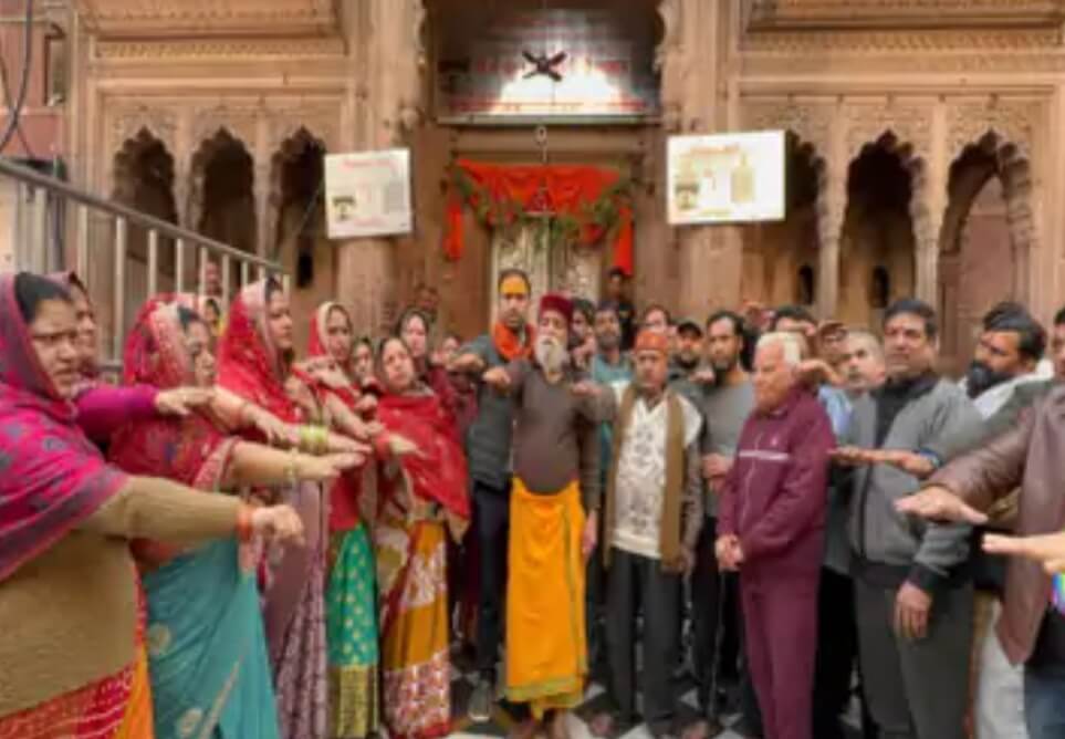 मथुरा। वृंदावन में श्रीबांकेबिहारी मंदिर कॉरिडोर को लेकर सेवायत गोस्वामी परिवार की महिलाओं एवं स्थानीय लोगों ने विरोध दर्ज कराया। उन्होंने मंदिर के मुख्य द्वार पर प्रस्तावित कॉरिडोर निर्माण के लिए हाथ उठाकर अपना मकान और मंदिर नहीं देने की शपथ ली। सभी ने एक स्वर में कहा कि सरकार दबाव डालकर सैकड़ों साल पुराने मंदिरों और मकानों को छीनना चाहती है। पंडित सोहन लाल मिश्र ने कहा कि सुप्रीम कोर्ट का सख्त आदेश है कि यदि कॉरिडोर बनता है तो श्रीबांकेबिहारी मंदिर के कोष से रकम दी जाएगी और बिहारीजी मंदिर के निमित्त ही रजिस्ट्री होगी तो फिर प्रशासन अपने नाम रजिस्ट्री कैसे करवा सकता है और कहां से धन दे रहा है। उन्होंने कॉरिडोर के लिए लोगों द्वारा की गई रजिस्टि्स्ट्रयों को अवैध करार दिया। राधा मिश्रा ने कहा कि प्रशासन जनता के बीच में भ्रम की स्थिति पैदा करके लोगों को दबाव में लेने की कोशिश कर रहा है। शशि पहलवान ने कहा कि ऑनलाइन रजिस्ट्रेशन करके सरकार मंदिर में भीड़ के दबाव को कम कर सकती है। गोस्वामी परिवार से नीलम गोस्वामी ने कहा कि वह किसी कीमत पर अपने घर एवं मंदिर की रजिस्ट्री नहीं करेंगी। मौजूद लोगों ने एक स्वर में कहा कि हाईपावर्ड कमेटी में शामिल सदस्यों को पहले अपने घरों एवं मंदिर की रजिस्ट्री करनी चाहिए। गौरतलब है कि प्रशासन को अब तक 7 रजिस्ट्री कराने में सफलता मिल चुकी है, जिसमें 900 वर्ग मीटर भूमि का अधिग्रहण किया जा चुका है। विरोध प्रदर्शन के दौरान बृजेंद्र गोस्वामी, देव गोस्वामी, रेनू गोस्वामी, अलौकिक गोस्वामी, आकाश गोस्वामी, सोमनाथ गोस्वामी, रुक्मणि रमन गोस्वामी, दीपक पाराशर, गोविंद खंडेलवाल, वैभव सिद्ध आदि उपस्थित रहे।
