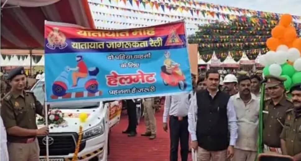 मथुरा। एक नवंबर से शुरू होने वाला यातायात माह ब्रज में धार्मिक आयोजन के चलते चार दिन बीतने के बाद आज से यातायात माह का शुभांरभ धोलीप्याऊ रेलवे ग्रांउड पर चल रहे ब्रजरज महोत्सव से जिलाधिकारी सीपी सिंह और एसएसपी श्लोक कुमार ने फीटा काटकर और दीप प्रजवल्न कर किया। इस अवसर पर रैली भी निकाली गयी।