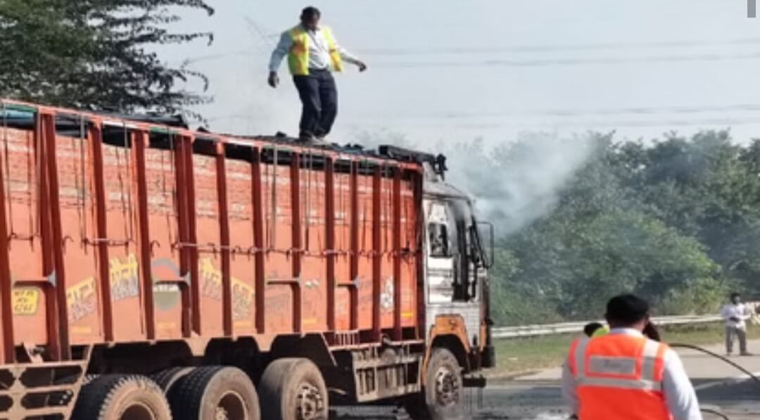 नोहझील के यमुना एक्सप्रेस-वे पर ट्रक में लगी आग