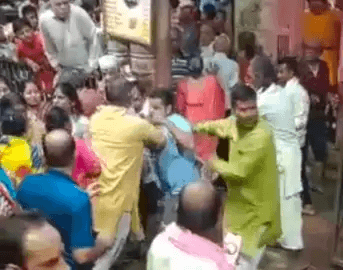 मथुरा के गोवर्धन में आन्यौर-जतीपुरा गिरिराज जी मुखारबिंद मंदिर में पंडों के दो गुट आपस में भिड़ गए। मंदिर परिसर में दोनों ओर से जमकर मारपीट हुई। इससे श्रद्धालुओं में अफरा-तफरी मच गई। पूरे घटनाक्रम का वीडियो शनिवार को सोशल मीडिया पर वायरल हो गया। वायरल वीडियो में कुछ लोग एक वृद्ध महिला श्रद्धालु को धक्का देकर छड़ी (बेंत) छीनते व आपस में एक दूसरे से मारपीट करते देखे जा रहे हैं। मारपीट को देख श्रद्धालु इधर-उधर भागते दिख रहे हैं। स्थानीय लोगों के अनुसार, पंडों के दो गुट पूजा को लेकर चार दिन पहले आपस में भिड़े थे। मंदिर में मारपीट की यह कोई पहली घटना नहीं, इससे पहले भी कई बार सेवायत श्रद्धालुओं के साथ अभद्रता कर चुके हैं। मुखारबिंद मंदिर जतीपुरा के रिसीवर विजय श्याम दुबे ने बताया कि मंदिर परिसर में मारपीट की वीडियो के माध्यम से जानकारी मिली है। इसकी जांच कराकर कार्रवाई करेंगे