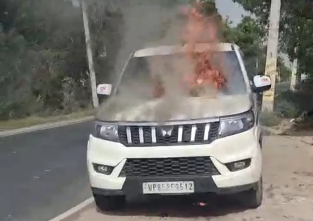 सुरीर थाना क्षेत्र में चलती गाड़ी में लगी आग, कूदकर बचे दो सवार