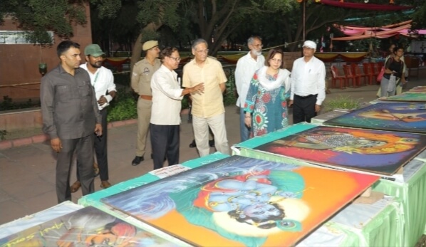 मथुरा। उप्र ब्रज तीर्थ विकास परिषद के उपाध्यक्ष शैलजाकांत मिश्र और उनकी धर्मपत्नी ने रसखान समाधि पहुंच कर सांझी महोत्सव-2023 में बनाई गयीं सांझियों का अवलोकन किया। सायंकाल ओपन एयर थियेटर (ओएटी) में रखखान के पदों पर संगीतमयी प्रस्तुति को अंत तक देखा। कलाकार गोपाल गोप व अन्य का मंच पर पटुका पहनाकर अभिनंदन किया।