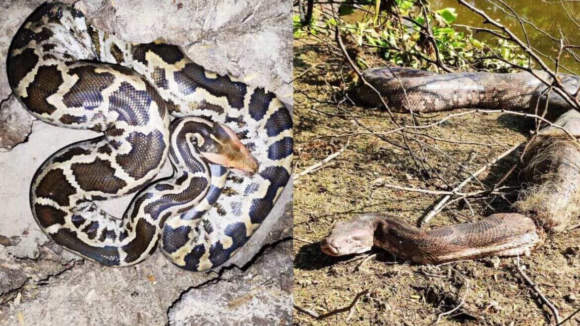 मथुरा के कोयला अलीपुर में एक विशाल अजगर ने ग्रामीणों को डरा दिया, जब सांप खेत से निकल कर एक घर के समीप पहुंच गया। सुरक्षा के मद्देनज़र परिवार ने तुरंत वाइल्डलाइफ एस.ओ.एस को इसकी सूचना उनके हैल्प लाइन नंबर पर दी। जहां लगभग 12 फीट लंबे और 25 किलो से अधिक वजन वाले अजगर को मथुरा के कोयला अलीपुर गांव से रेस्क्यू किया गया वहीं लगभग 11 फीट लंबे और 21 किलो वजनी दूसरे अजगर को आगरा के किरावली छेत्र स्थित मोहरी गांव से बचाया गया। इसके बाद तीसरे अजगर को आगरा के ही बिचपुरी क्षेत्र से रेस्क्यू किया गया। टीम ने एक ही दिन में 4 बड़े अजगर रेस्क्यू किये। मथुरा के कोयला अलीपुर में एक विशाल अजगर ने ग्रामीणों को डरा दिया, जब सांप खेत से निकल कर एक घर के समीप पहुंच गया। सुरक्षा के मद्देनज़र परिवार ने तुरंत वाइल्डलाइफ एस.ओ.एस को इसकी सूचना उनके हैल्प लाइन नंबर पर दी। अजगर का वजन 25 किलो से अधिक और लंबाई लगभग 12 फीट थी। एन.जी.ओ की दो सदस्यीय टीम ने सावधानी से सांप को पकड़ा, जिसके बाद वहां मौजूद लोगों ने राहत की सांस ली। दूसरे बड़े अजगर को आगरा के किरावली क्षेत्र स्थित मोहरी गाँव से बचाया गया। जहां नहर में अजगर देखा गया था। करीब 11 फुट लंबा सांप गलती से मछली पकड़ने वाले जाल में बुरी तरह फंस गया था। सूचना मिलते ही टीम ने कड़ी मशक्कत कर जाल को काटा और लगभग 21 किलो वज़नी अजगर को बचाया।वाइल्डलाइफ एस.ओ.एस के सह-संस्थापक और सी.ई.ओ, कार्तिक सत्य नारायण ने कहा मछली पकड़ने के जाल अक्सर वन्य जीवों के लिए एक बड़ा खतरा बन जाते हैं विशेष रूप से सांप और मगरमच्छ जैसे जानवरों के लिए। वाइल्ड लाइफ एस.ओ.एस ने पहले भी जाल में फसे सांपों को बचाया है। इस बचाव अभियान में टीम को यह सुनिश्चित करना आवश्यक था कि जाल काटते समय अजगर को किसी तरह की चोट ना पहुचे। वाइल्ड लाइफ की टीम ने आगरा के बिचपुरी क्षेत्र में एक घर के पास देखे गए 6 फुट लंबे अजगर को भी रेस्क्यू किया। वाइल्ड लाइफ एस.ओ.एस ने रुनकता स्थित जूता बनाने वाली कंपनी के स्टोर रूम से 7 फीट लंबा अजगर भी बचाया। वाइल्ड लाइफ एस.ओ.एस के डायरेक्टर कंज़रवेशन प्रोजेक्ट्स बैजूराज एम.वी ने बताया कि सभी चार सांप वर्तमान में चिकित्सकीय निगरानी में हैं और जल्द ही जंगल में वापस छोड़ दिए जाएंगे। इस बात की खुशी है की लोग ऐसी स्थिति में उचित निर्णय ले रहे हैं और हैल्प लाइन पर इसकी सूचना दे कर विशेषज्ञों की सहायता लेते हैं।
