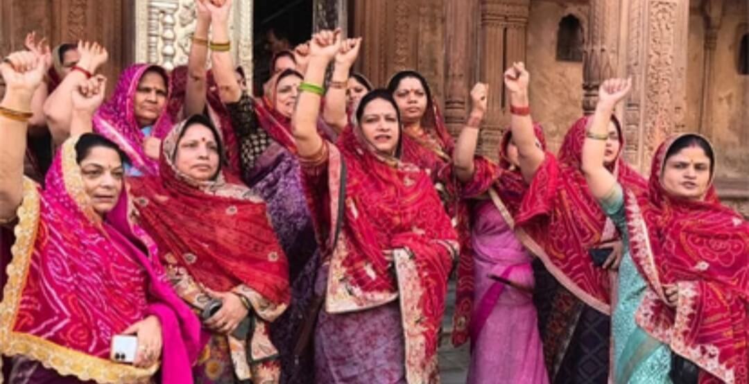 मथुरा। वृंदावन में ठाकुर श्री बांकेबिहारी मंदिर में दर्शनों का समय बढ़ाने को लेकर हाईपावर्ड कमेटी के फैसले का विरोध तेज हो गया है। शनिवार को गोस्वामी समाज की महिलाओं ने मंदिर के मुख्य द्वार पर एकत्र होकर प्रदर्शन किया और इसे ठाकुर जी की प्राचीन पूजा परंपरा के विरुद्ध बताया।