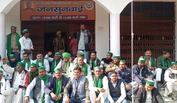 मथुरा आज दिनांक 11 दिसंबर 2023 को भारतीय किसान यूनियन टिकैत के कार्यकर्ताओं पदाधिकारी ने अपने निर्धारित कार्यक्रम के तहत संयुक्त किसान मोर्चा के निर्देश पर केंद्र सरकार की वादा खिलापी के विरोध में मथुरा कलेक्ट पर जोरदार प्रदर्शन कर जिला अधिकारी की अनुपस्थिति में उप जिला अधिकारी को ज्ञापन सोपा भारतीय किसान यूनियन टिकैत के कार्यकर्ता सिंचाई विभाग के कार्यालय पर इकट्ठा होकर जय जवान जय किसान बाबा टिकैत अमर रहे जो ना माने झंडे से वह मानेगा डंडे से बाबा टिकैत अमर रहे हैं चौधरी नरेश टिकैत राकेश टिकैैत जिंदाबाद के नारे लगाते हुए जिलाधिकारी कार्यालय पहुंचे वहीं पर जमीन पर धरने पर बैठ गए। कुछ देर बाद अधिकारियों ने आकर ज्ञापन लिया। भारतीय किसान यूनियन टिकैैत के जिला अध्यक्ष देवेंद्र कुमार रघुवंशी वरिष्ठ किसान नेता गजेंद्र सिंह गावर भारतीय किसान यूनियन टिकैत के महानगर अध्यक्ष पवन चतुर्वेदी ने संयुक्त रूप से कहा केंद्र सरकार ने किसानों के साथ वादा खिलाफी की है 13 माह के किसान आंदोलन में केंद्र सरकार ने किसानों से वादा किया था लेकिन वह वादा झूठा निकला यह सरकार जुमले बाज सरकार है इस सरकार ने देश की जनता व किसानों को सिर्फ जुमले दिए हैं गाजीपुर बॉर्डर आंदोलन में केंद्र सरकार का किसानों से जो समझौता हुआ था उस समझौते से सरकार मुकर गई है किसानों पर लगे कोई भी केस अभी वापस नहीं लिए गए हैं जिसकी कड़े शब्दों में निंदा करते हैं केंद्र सरकार किसानों पर लगे सभी मुकदमे वापस ले किसान नेताओं का जो उत्पीड़न हो रहा है उसे रोका जाए वर्तमान केंद्र सरकार किसान विरोधी सरकार है इस सरकार ने किसान हित के लिए कुछ भी नहीं किया सिर्फ किसानों का शोषण किया है जिसे सहन नहीं किया जाएगा।