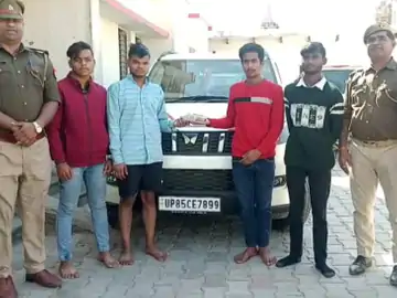मथुरा में चार युवकों का तमंचा लेकर गाड़ी में घूमते हुए वीडियो सोशल मीडिया पर वायरल हुआ है। पुलिस ने मुकद्दमा दर्ज कर चारों युवकों को गिरफ्तार कर लिया। पुलिस ने युवकों के पास से बोलेरो गाड़ी और तमंचा भी बरामद किया है। पुलिस की गिरफ्त में आने के बाद अब आरोपी सॉरी बोल रहे हैं। सोशल मीडिया पर 47 सेकंड का वीडियो सोशल मीडिया पर वायरल हुआ। इस वीडियो में 4 युवक एक गाड़ी में बैठे हैं और बदमाशों का मेल रहन दे गाना गाते हुए हाथ में तमंचा लहरा रहे हैं। गाड़ी की खिड़कियों के कांच खुले हुए हैं और हाथ में युवकों के तमंचा है। गाड़ी मथुरा की सड़कों पर घूम रही है और युवक वीडियो बनाते हुए गाना गा रहे हैं। शहर कोतवाली पुलिस वाहन चैकिंग कर रही थी। इसी दौरान पुलिस को सूचना दी कि कुछ युवक बोलरो गाड़ी में हाथ में तमंचा लेकर तेज गति से गाड़ी चलाते हुए घूम रहे हैं और अभी शहर के पॉश इलाके कृष्णा नगर की तरफ गए हैं। सूचना मिलते ही पुलिस चारों युवकों की तलाश में जुट गई। पुलिस ने जब युवकों की तलाश की तो काफी देर तक तलाश करने के बाद सभी युवक गाड़ी सहित कृष्णा नगर इलाके की बैंक कॉलोनी में खाली पड़े एक प्लॉट में गाड़ी खड़ी करके उसके अंदर बैठे हुए मिले। पुलिस ने घेराबंदी कर चारों युवकों को गिरफ्तार कर लिया।पुलिस ने गिरफ्तार किए गए चारों युवकों से जब नाम पूछे तो युवकों ने अपने नाम हर्ष गोस्वामी उर्फ सूरज पुत्र सत्यानंद गिरी,दीपेश सिंह पुत्र महेश चंद निवासी 92 नई बस्ती विकास नगर हाई वे,हेमंत गोला पुत्र चंद्रवीर निवासी एवन होटल वाली गली जन्मभूमि लिंक रोड और सचिन कुमार पुत्र सोनपाल निवासी रामनगर कृष्णा नगर मथुरा बताया। पुलिस ने जब गाड़ी की तलाशी ली तो उसमें 315 बोर का तमंचा और कारतूस बरामद हुए। एसपी सिटी मार्तंड प्रकाश सिंह ने बताया कि चारों युवकों के खिलाफ कृष्णा नगर चौकी प्रभारी अजय अवाना ने शहर कोतवाली में धारा 3,25 में मुकद्दमा दर्ज कराया है। चारों युवकों को गिरफ्तार कर लिया है। गाड़ी को मोटर व्हीकल एक्ट की धारा 207 में सीज कर दिया है।